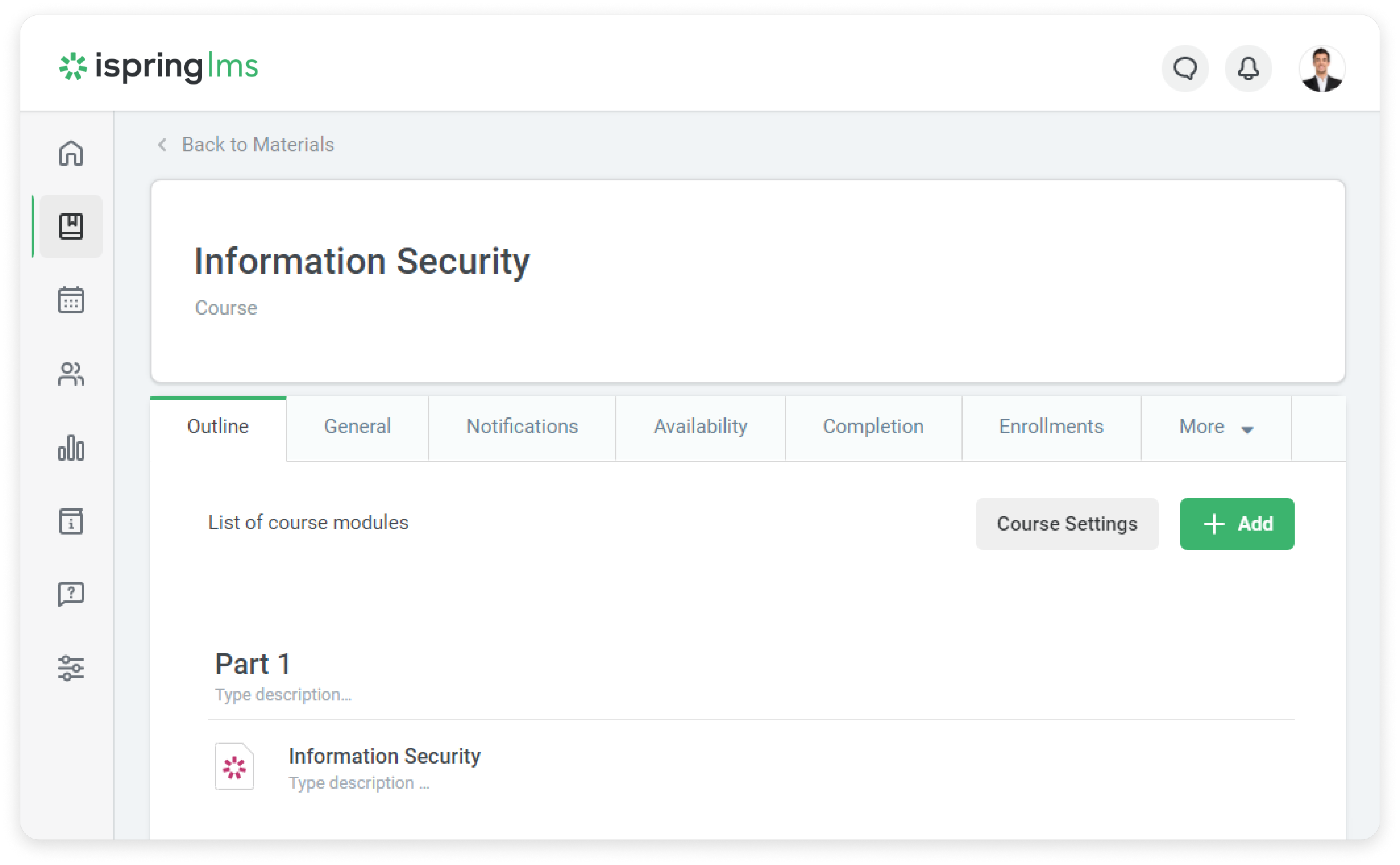 iSpring Suite will update the content, and you'll be able to start managing it.