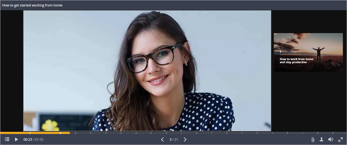 The video’s portion is increased and is displayed at the left; the slide’s portion appears at the right and is much smaller.