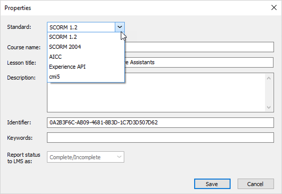 | Identifier | This is a unique code for the interaction. An identifier can be used by the LMS to distinguish one interaction from another. For example, if you download an interaction with the same ID, the LMS can offer to replace the previously downloaded ID. |