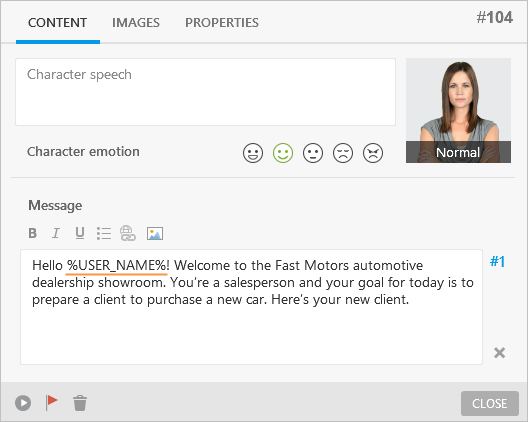 Let's talk about using variables in the role-plays texts. We will take the Name field as an example.