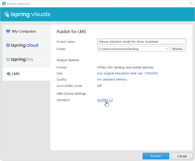 1. Click Publish on the iSpring Visuals toolbar.