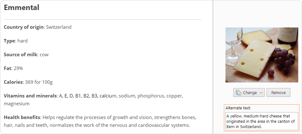 - Rely on text rather than on images to convey the important info. Include meaningful data in the interaction wording or, at least, add alternative text (alt-text) to a picture.