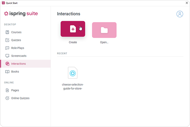 - Launch iSpring Suite, open the Interactions tab, then create a new interaction or open an existing one.