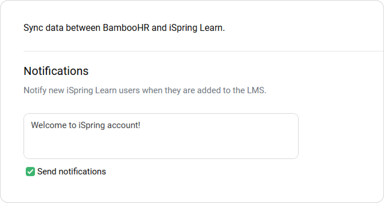 In the Notification block, add the text of the message that users will receive when they’re added to the iSpring LMS account. This field is optional.