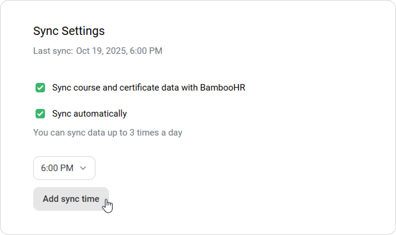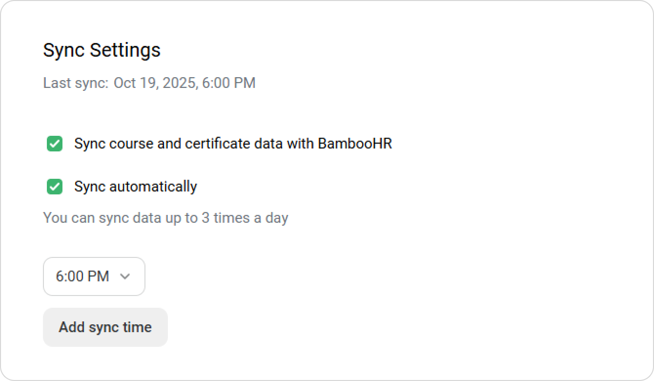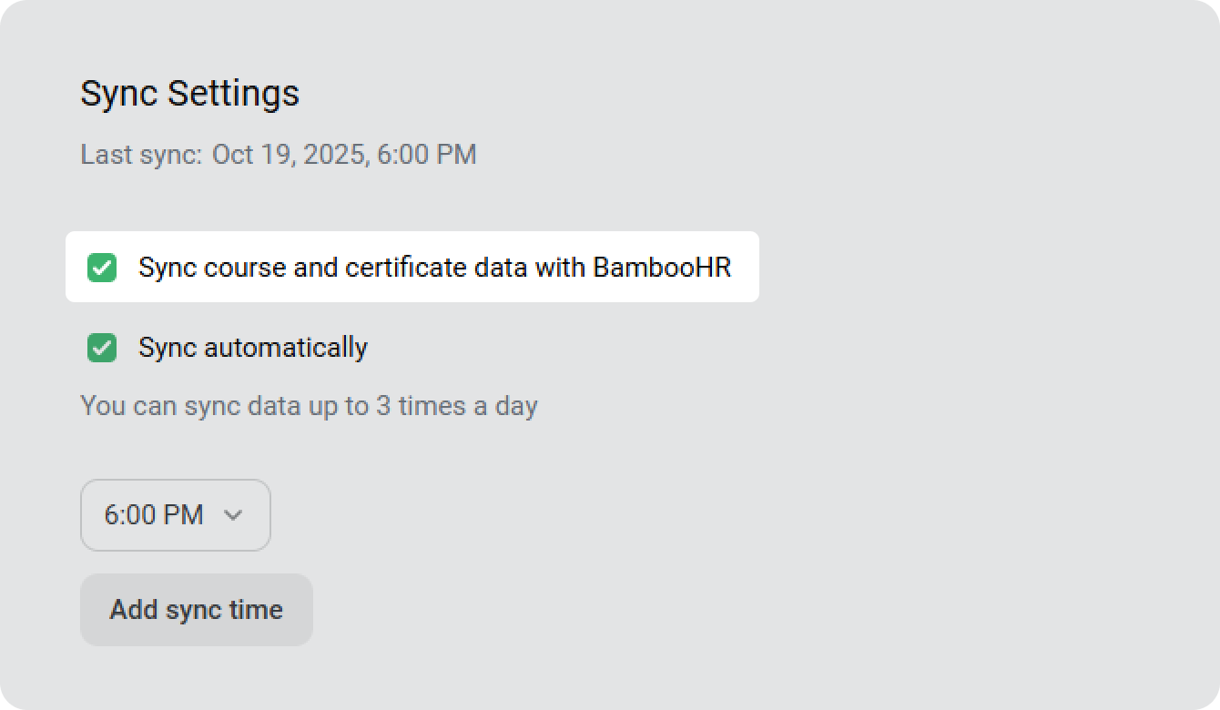 The following data can be synchronized between iSpring LMS and BambooHR: