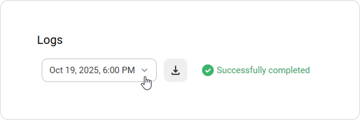 - In the Logs section, you’ll find a drop-down list of synchronizations that have taken place or are currently occurring, as well as their time and status.