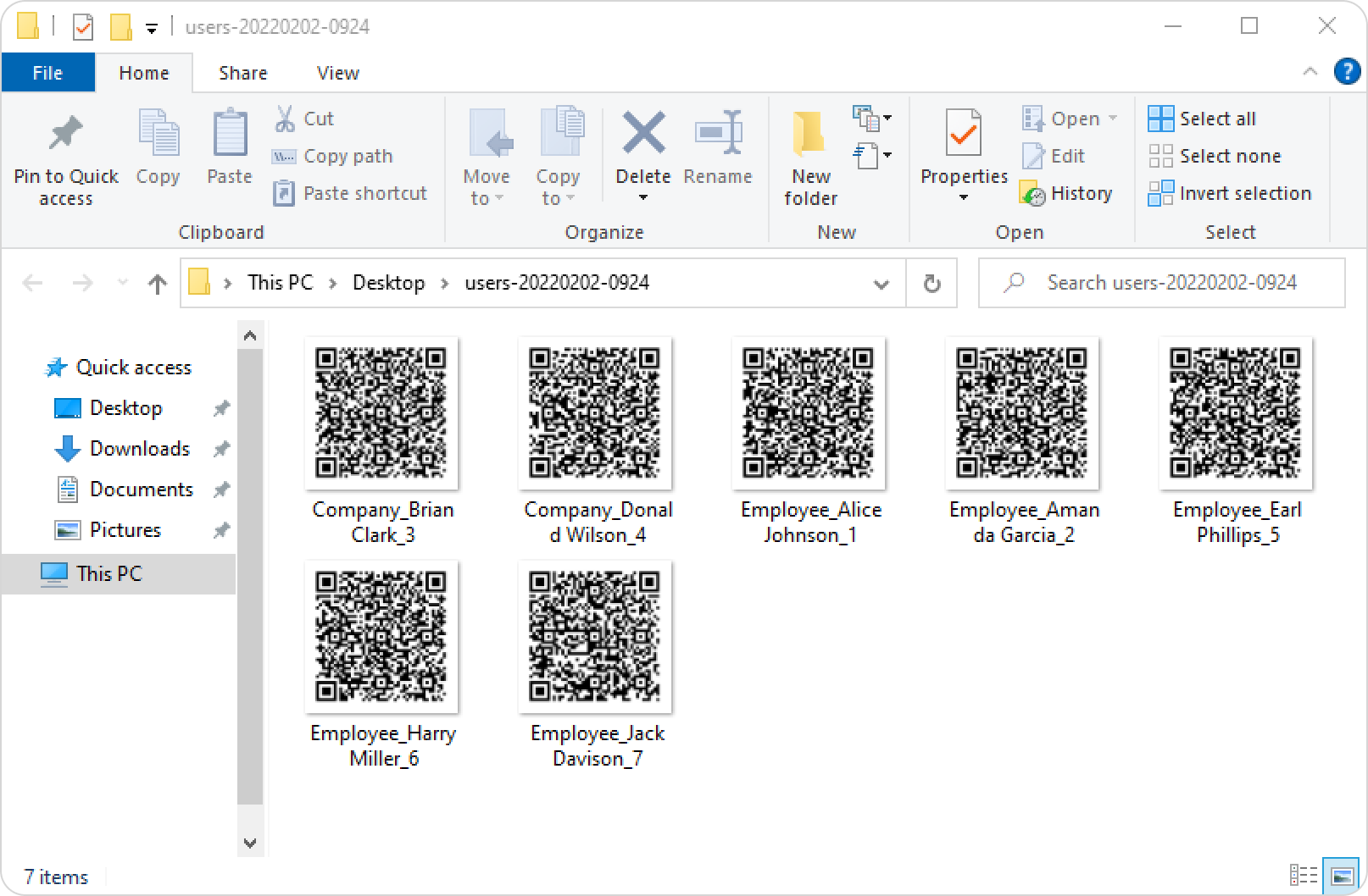 - Unzip and open the file. The exported file will contain users’ QR codes.