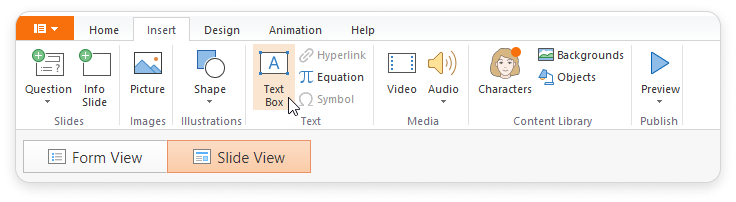 - Next, click Text Box and select the area on the slide where the text box will be inserted.