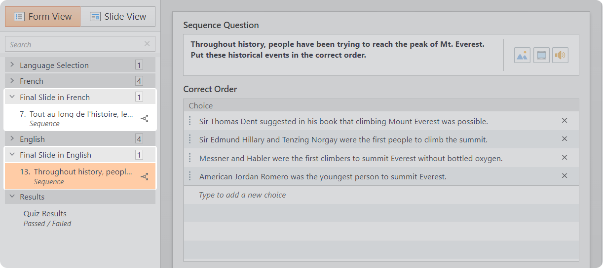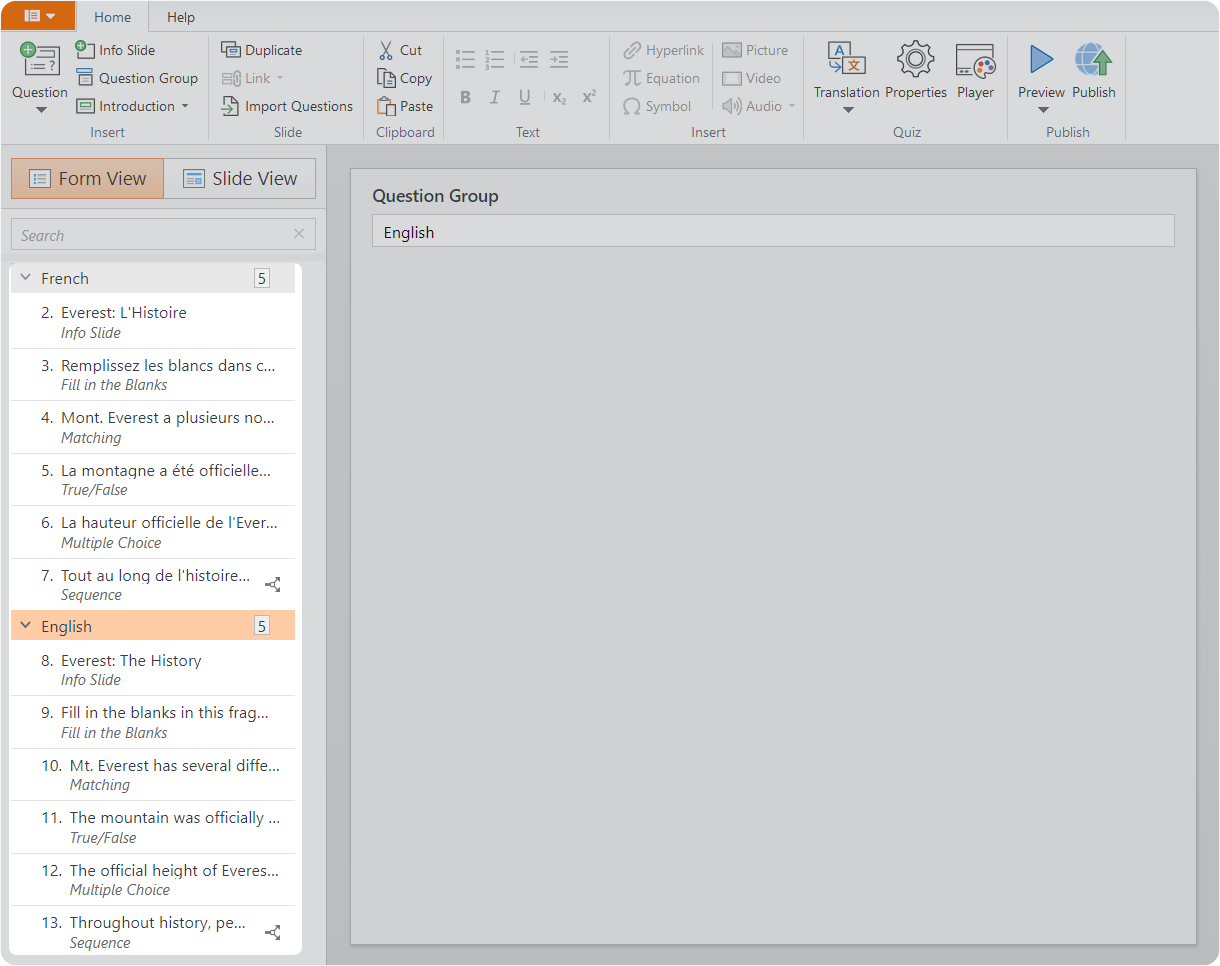 This guide will show you how to create a single quiz that can be taken in two different languages.