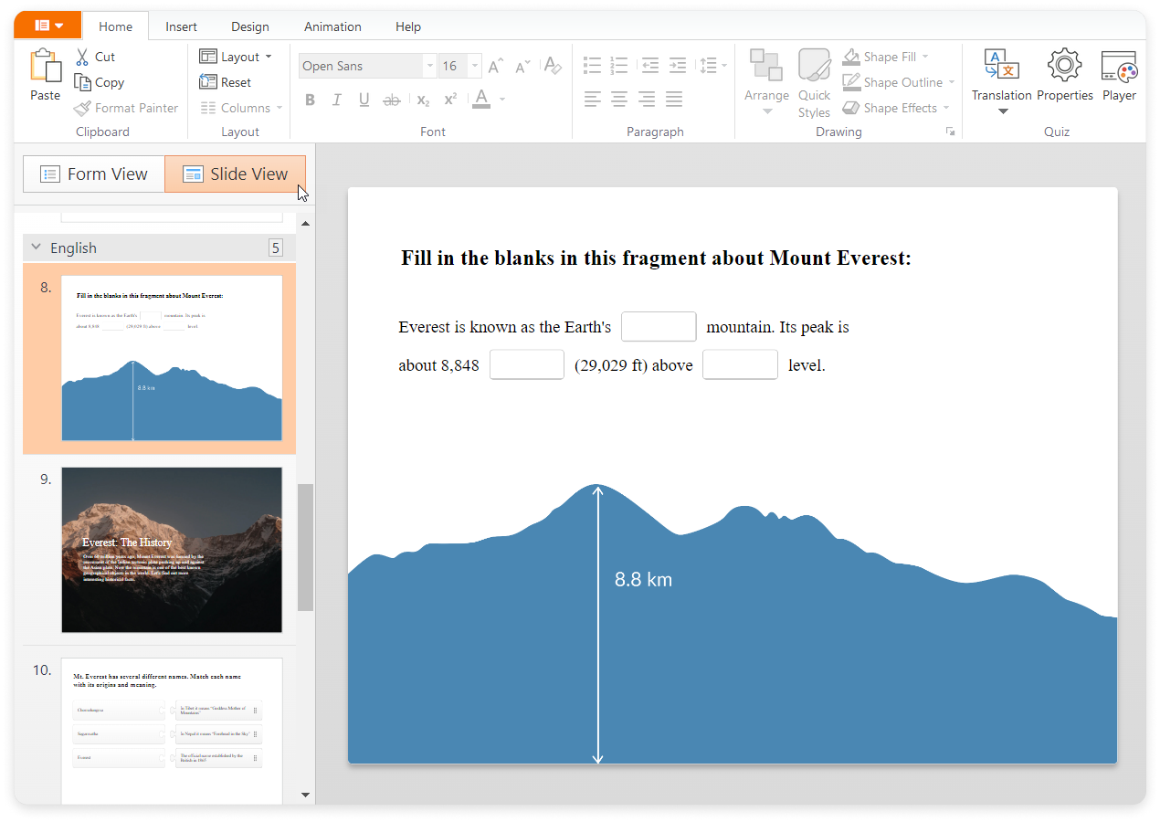 - Change the design in the Slide View mode.