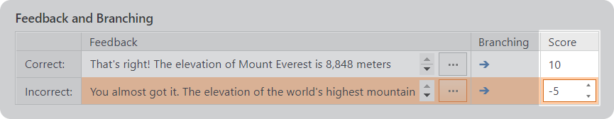 - For each question, set points for correct and incorrect answers.