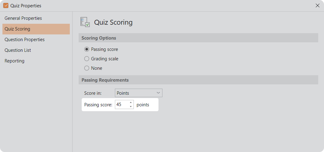 How to set the quiz scoring settings