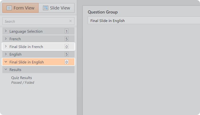 - Add one more group for each language. For example, "Final Slide."