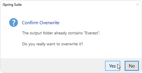 A dialog window will appear prompting you to overwrite the existing course. Click Yes.