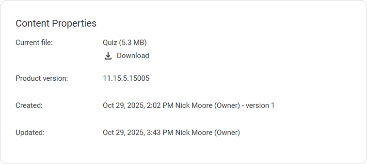 You will see the new version of the course in the Content Properties section in iSpring LMS.